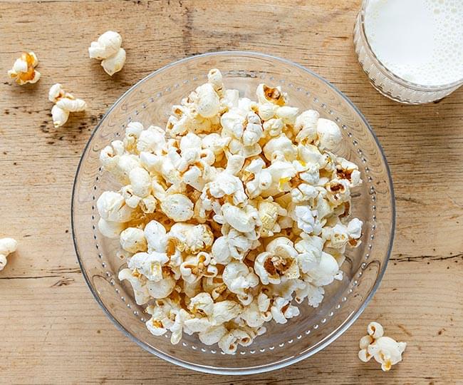 Popcorn är gott och mjölk är gott – tillsammans smakar det himmelskt.