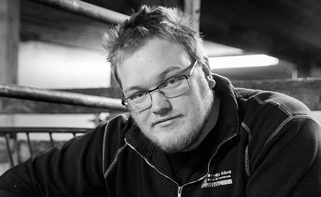 Idag är jag 26 år och sköter den dagliga driften här. Steget till att jobba här var inte långt. En stor anledning till att jag trivs så bra med det jag gör är att jag får vara nära djuren. För det är något rofyllt att sköta om mjölkkor. En annan orsak till at jag trivs så bra är att jobbet på en bondgård är så varierande. Den ena dagen är aldrig den andra lik. Men det som skänker mig mest glädje är att jag känner ett starkt stöd från alla er som väljer norrländskt. Det betyder otroligt mycket att veta att det arbete som vi gör, hamnar på matbord runt om i Norrland. Om tio år hittar du mig förhoppningsvis fortfarande här på gården. Jag kan inte tänka mig att göra något annat, det här är en livsstil. Min livsstil. Och det är du som gör det möjligt genom ditt val. Tillsammans håller vi Norrland levande och så vi kan njuta av 100 % norrländska mejerivaror på våra matbord. Stort tack för det!