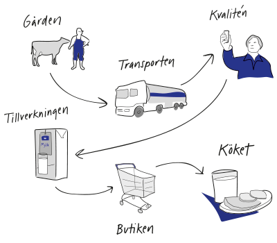 Du som läser detta har kanske både ett och två mjölkpaket i kylskåpet. Men hur hamnande de där? Det enkla svaret är att du köpte mjölken i en butik och placerade den i kylen. Verkligheten är lite mer komplicerad och mycket mer intressant. Häng med oss på mjölkens resa hela vägen från gården till köksbordet!