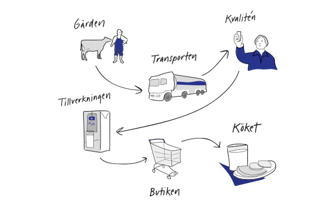 Du som läser detta har kanske både ett och två mjölkpaket i kylskåpet. Men hur hamnande de där? Det enklaste svaret är att du köpte mjölken i en butik och placerade den i kylen. Verkligheten är lite mer komplicerad och mycket mer intressant. Häng med oss på mjölkens resa hela vägen från gården till köksbordet!