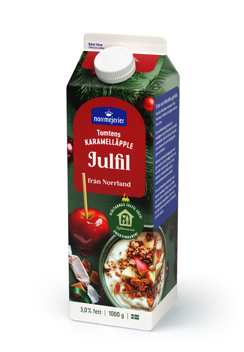 Årets Julfil 2025 är ”Tomtens Karamelläpple”, en smak som provats och röstats fram av barn på Hjältarnas Hus. Tomtens Karamelläpple är en riktigt härlig och julig smakupplevelse, som tar plats vid sidan av Julfilsoriginalet, Pepparkaka. Julfil sprider lite extra julkänsla runt om i norrländska kylskåp. Produkterna har en härligt krämig konsistens, balanserad sötma, och passar utmärkt till frukost, mellanmål, i en milkshake eller i glass. Som alla av Norrmejeriers produkter är den gjord på 100% norrländsk mjölk.